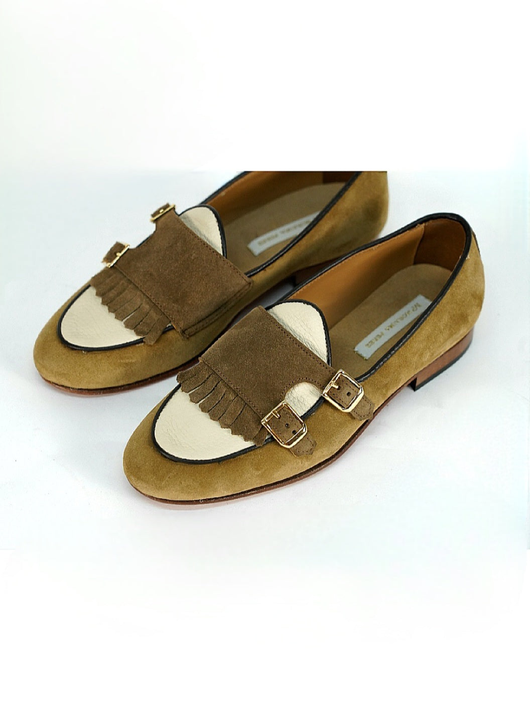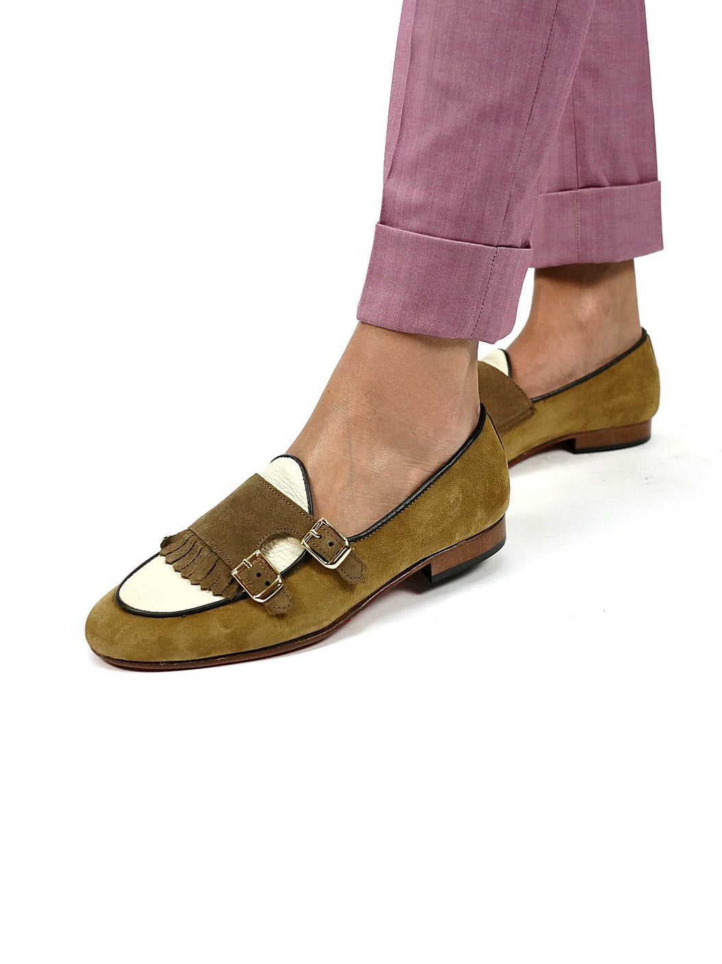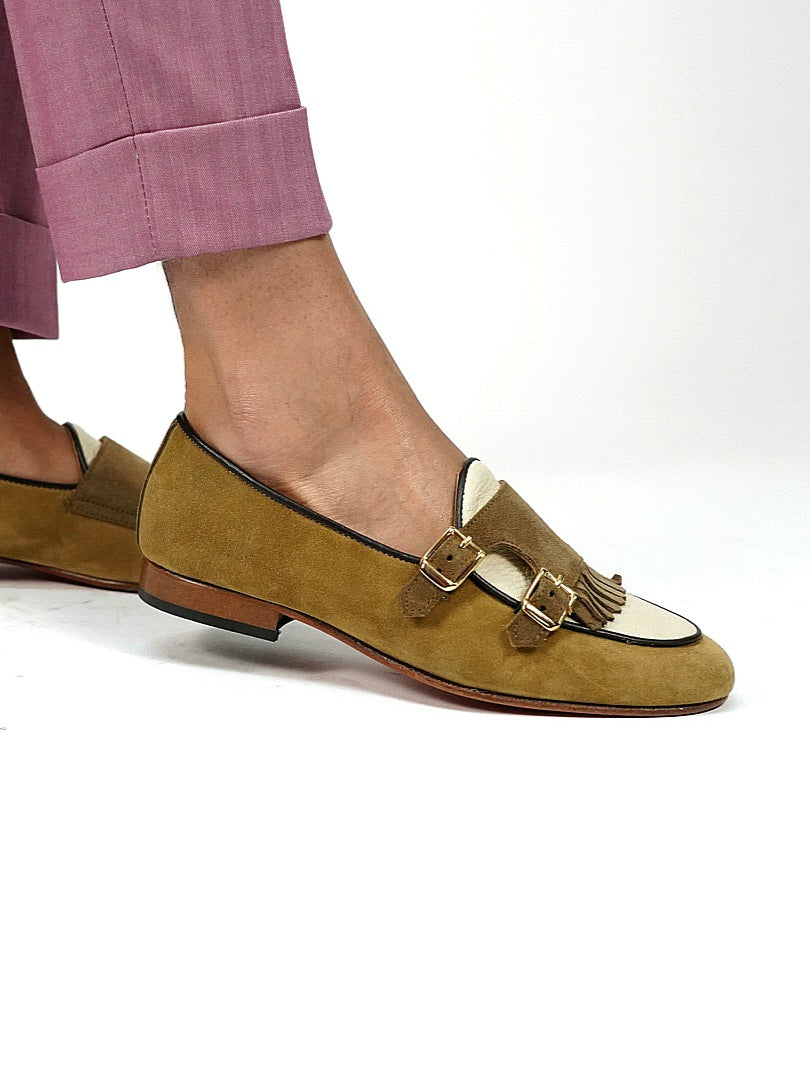 La tomaia e frange sono in pelle di vitello, vaschetta in pelle di vitello, fodera interna in vitello per garantire il massimo comfort, suola in cuoio con cucitura black, tacco 16mm.